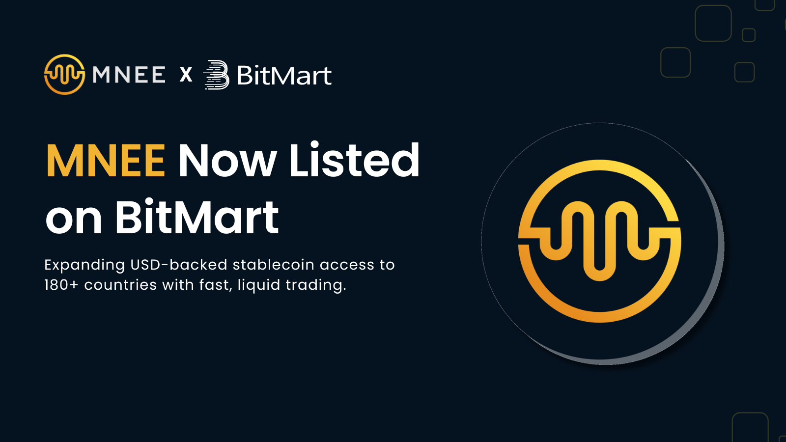 London, United Kingdom, December 4th, 2025– MNEE, a GENIUS Act-compliant USD-backed stablecoin, today announced its listing on BitMart, a leading global cryptocurrency exchange. The partnership provides MNEE with access to BitMart's millions of users across 180+ countries, significantly expanding trading availability and liquidity for the stablecoin.